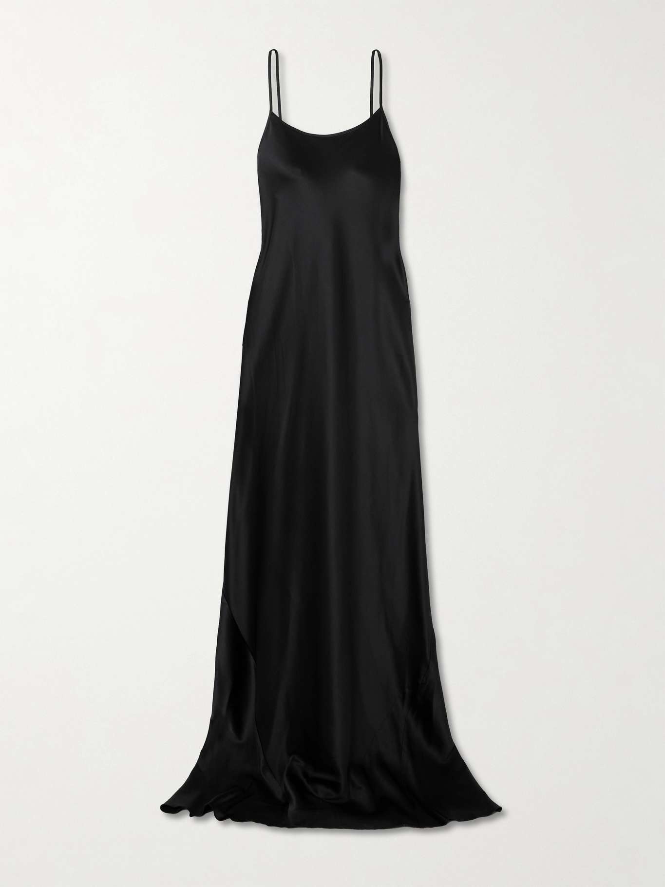 EDITORS'NOTES From get togethers with friends to date nights, Eterne's 'Evie' dress will see you through any occasion. It's cut from smooth stretch-silk to skim your frame and turns to reveal an alluring open-back framed by slim straps. The simple design makes it so easy to dress up or down. SIZE & FIT Model measurements: - Fits true to size, however those who are between sizes should take the smaller size - Designed for a slim fit - Mid-weight, fluid, non-stretchy fabric - Model is 180cm/ 5'11" and is wearing a size XSmall - Bust: 76cm/ 30" - Waist: 64cm/ 25" - Hip: 86cm/ 34" DETAILS & CARE - Black stretch-silk - Slips on - 93% silk, 7% spandex - Dry clean