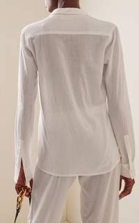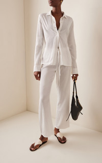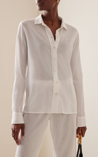 Founded by stylist Chloe Bartoli, Éterne specializes in elevated wardrobe essentials created with exquisite craftsmanship and their brand of muted luxury. Made just fur us, the 'Jolene' button-down shirt has a relaxed fit made from crinkled cotton that's light as air — making it perfect for balmy summer days. Wear it with the matching pant. PRODUCT DETAILS - Button fastenings through front - Composition: 100% cotton - Dry clean - Imported SIZE & FIT - Our model is 175cm/ 5'9" and wearing a size Small - Fits true to size, our fit specialist recommends taking your normal size - Designed for a relaxed fit
