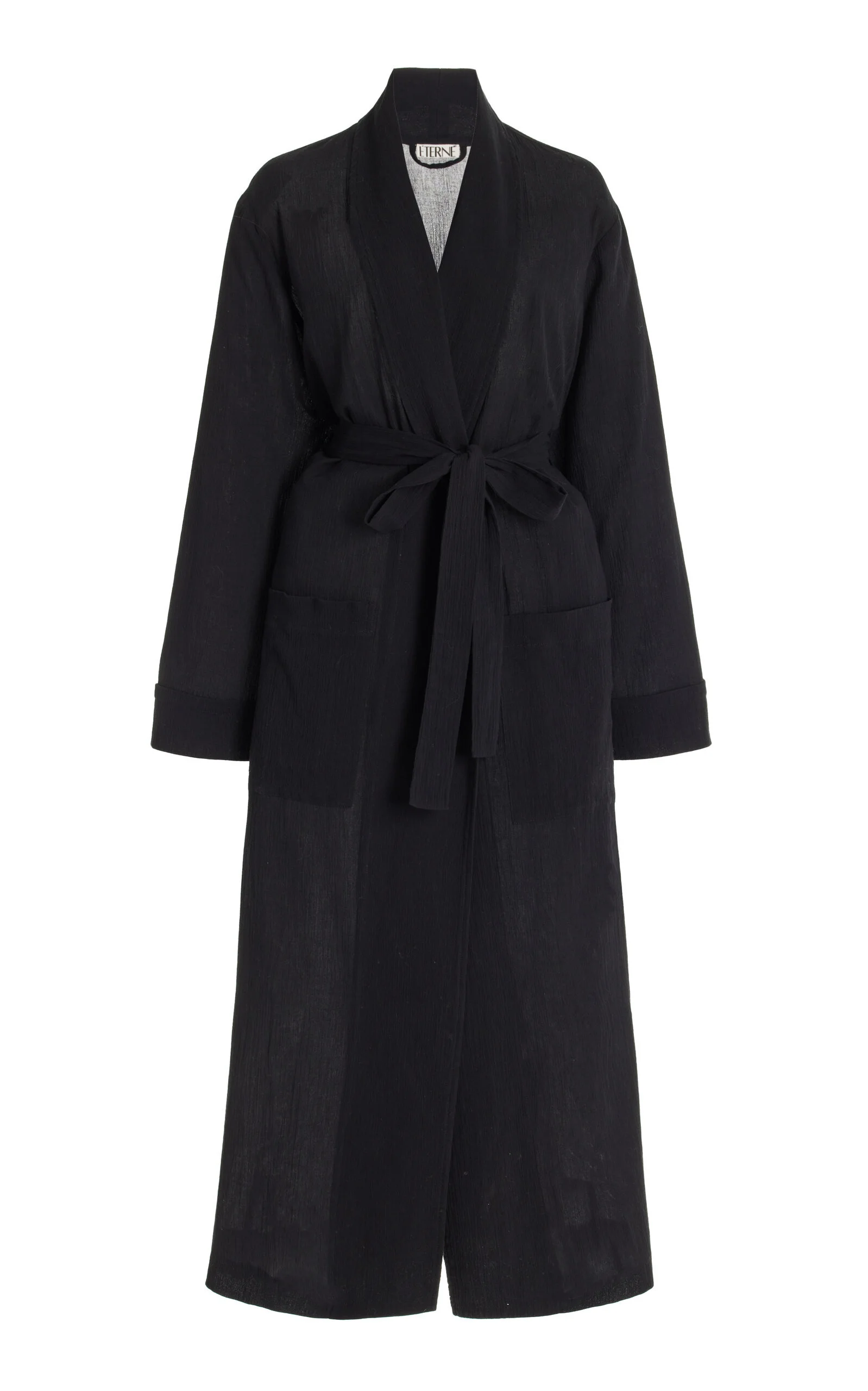 Founded by stylist Chloe Bartoli, Éterne specializes in elevated wardrobe essentials created with exquisite craftsmanship and their brand of muted luxury. This lightweight robe is made of a light-weight cotton and features a maxi length, relaxed sleeves, and side pocket details. Drape over any swimwear for an effortless beach edit.. PRODUCT DETAILS - Self-tie fastening - Composition: 100% cotton - Dry clean - Imported SIZE & FIT - Our model is 180cm / 5'11" and wearing a size Small - Fits true to size, our fit specialist recommends taking your normal size