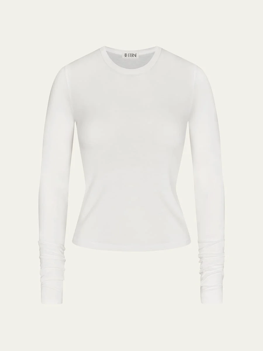 Eterne classic t-shirt Crew neckline Long sleeves Slightly cropped hem Fitted Pullover style Cotton/modal Made in USA Online Inquiries: BGS21_T68J0| Store Inquiries: #4928661