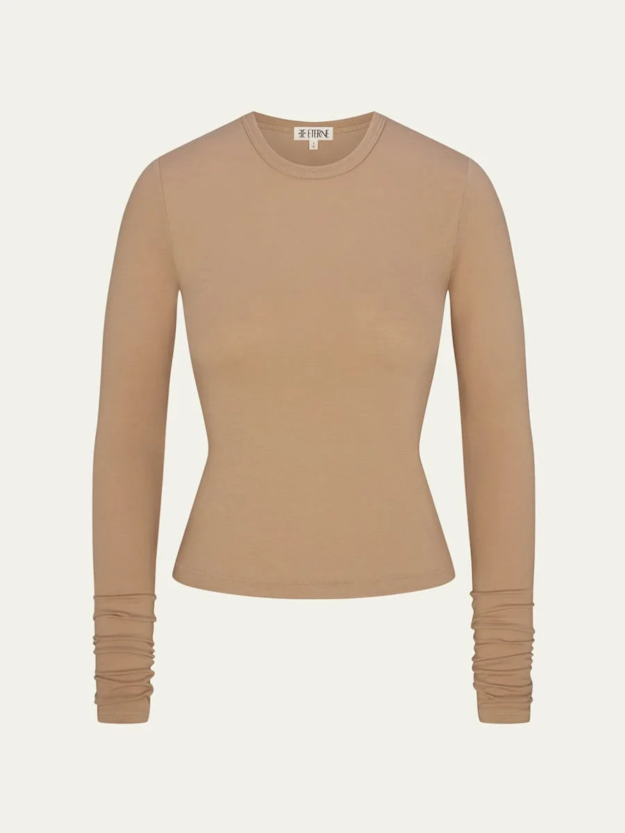 Eterne classic t-shirt Crew neckline Long sleeves Slightly cropped hem Fitted Pullover style Cotton/modal Made in USA Online Inquiries: BGS21_T68J0| Store Inquiries: #4928661