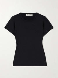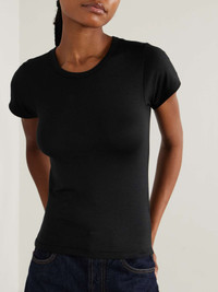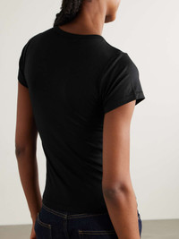 Eterne’s T-shirt is cut from stretch-modal jersey with a buttery soft, slinky handle. It's designed for a close fit and has a crew neckline and slightly cropped hem. Wear yours with high-rise jeans or track pants. Size & Fit - Fits true to size, take your normal size - Designed for a close fit - Lightweight, stretchy fabric - Model is 180cm/ 5'11" and is wearing a size Small Model measurements: - Bust: 80cm/ 31.5" - Waist: 65cm/ 25.5" - Hip: 89cm/ 35" Details & Care - Black stretch-modal jersey - Slips on - 96% modal, 4% spandex - Machine wash