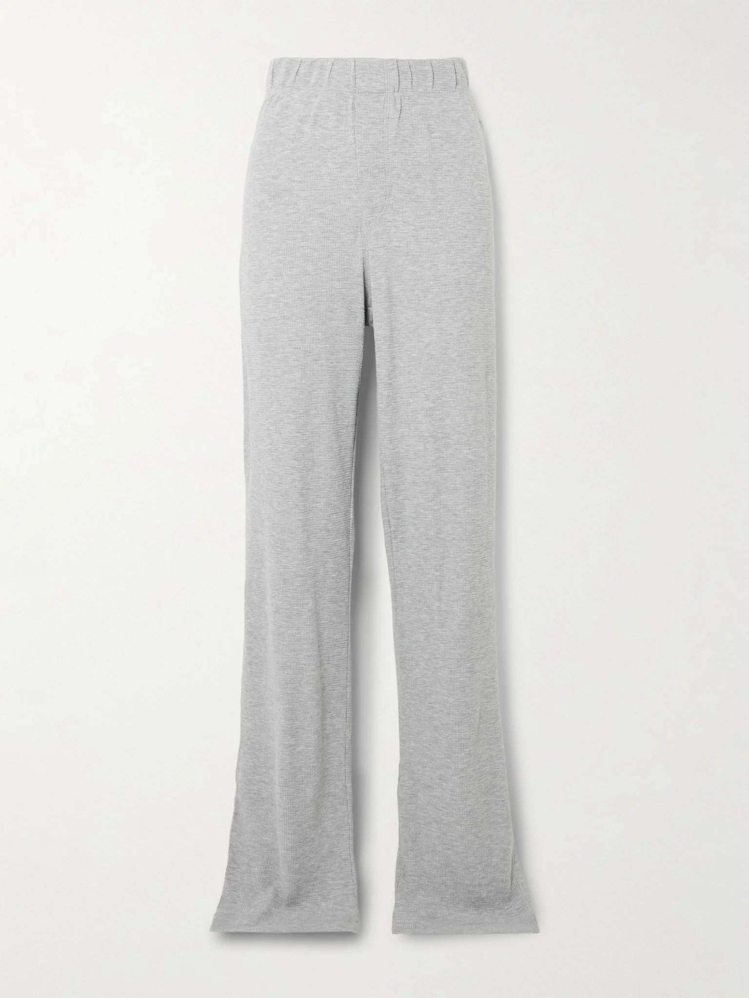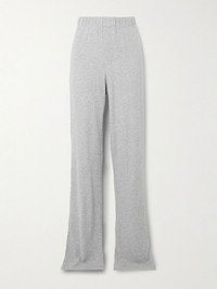 Eterne’s track pants are perfect for days spent relaxing, especially when teamed with the coordinating T-shirt in our edit. They're made from jersey with plenty of soft cotton and modal and a touch of stretch for added flexibility. The waffle-knit finish adds to the cozy feel. Size & Fit - Fits true to size, however those who are between sizes should take the smaller size - High-rise, designed for a straight-leg fit - Elasticated at the waist for a comfortable fit - Mid-weight, slightly stretchy fabric - Model is 177cm/ 5'10" and is wearing a size XSmall Model measurements: - Bust: 81cm/ 32" - Waist: 68cm/ 27" - Hip: 94cm/ 37" Details & Care - Light-gray jersey - Pull on - 48% cotton, 48% modal, 4% spandex - Machine wash