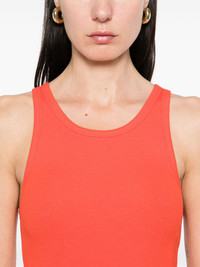 ribbed jersey tank top Highlights - Poppy red - Crew neck - Sleeveless - Racerback Made in United States Composition Cotton 48%, Modal 48%, Spandex/Elastane 4% SIZE & FIT Model measurements Height 5 ft 10 in(1.78 m) Bust/Chest 33.46 in(85 cm) Hips 36.22 in(92 cm) Waist 23.22 in(59 cm) FittingInformation Designed for a close fit throughout Made from a lightweight stretch fabric, this piece offers elasticity and flexibility when worn
