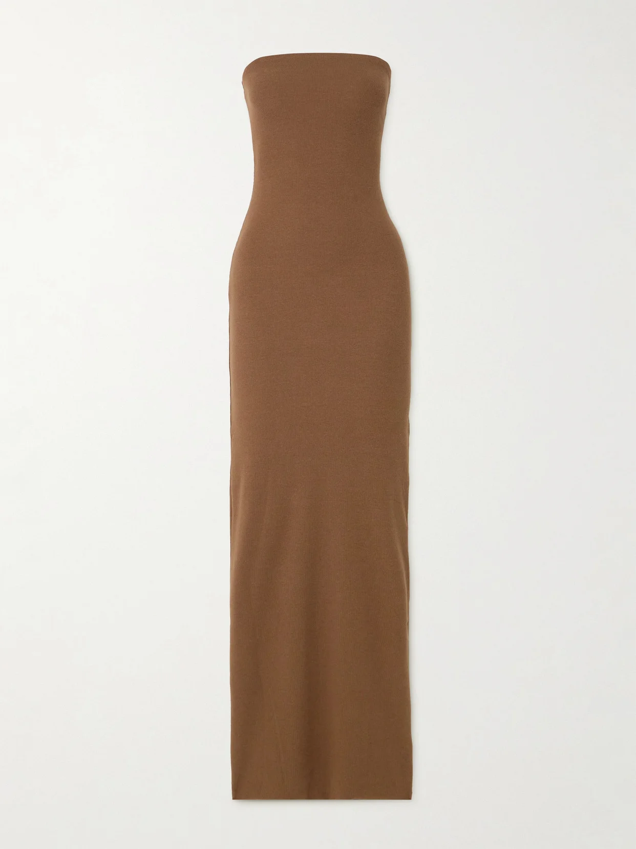 Strapless Ribbed Stretch-jersey Maxi Dress