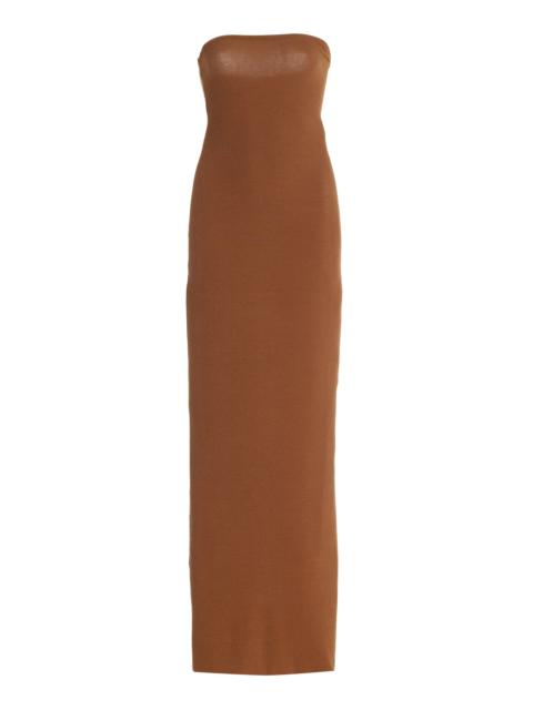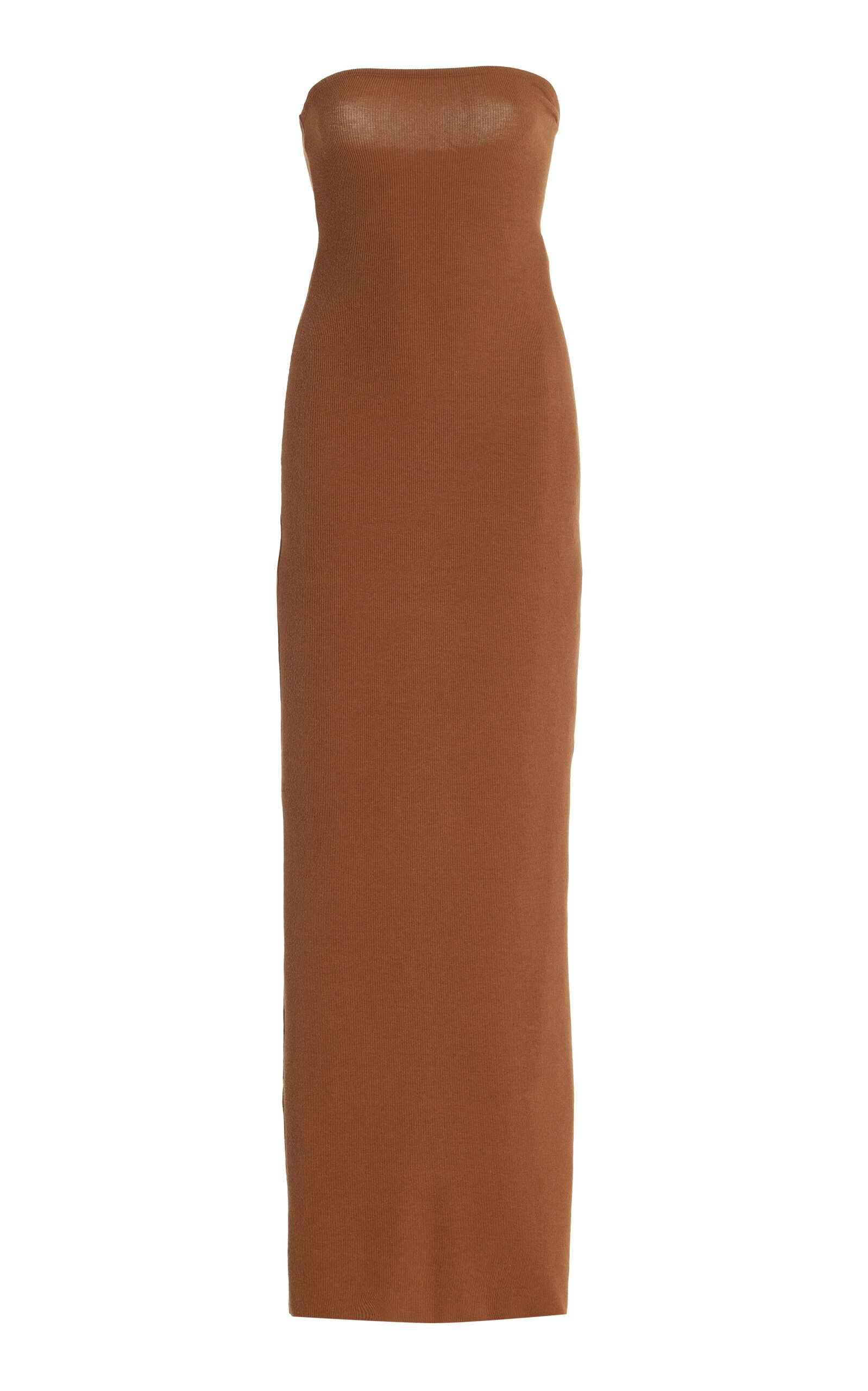 Founded by stylist Chloe Bartoli, Éterne specializes in elevated wardrobe essentials created with exquisite craftsmanship and their brand of muted luxury. Crafted from a ribbed-knit cotton-blend jersey, this form-fitting dress features a strapless neckline and tubular silhouette. PRODUCT DETAILS - Pre-Fall '24 - Slip on - Composition: 47% cotton, 47% rayon, 6% spandex - Designer color: Earth - Dry clean - Imported SIZE & FIT - Designed for a slim fit
