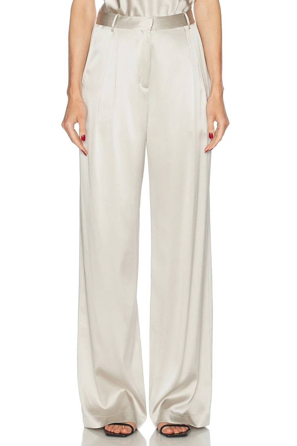 Details - 93% silk, 7% spandex - Made in China - Dry clean only - Zip fly with hook and bar clasp closure - 4-pocket styling - Front pleated detail - Satin fabric - Item not sold as a set - Our Style No. ETEF-WP40 - Manufacturer Style No. ESK121-25