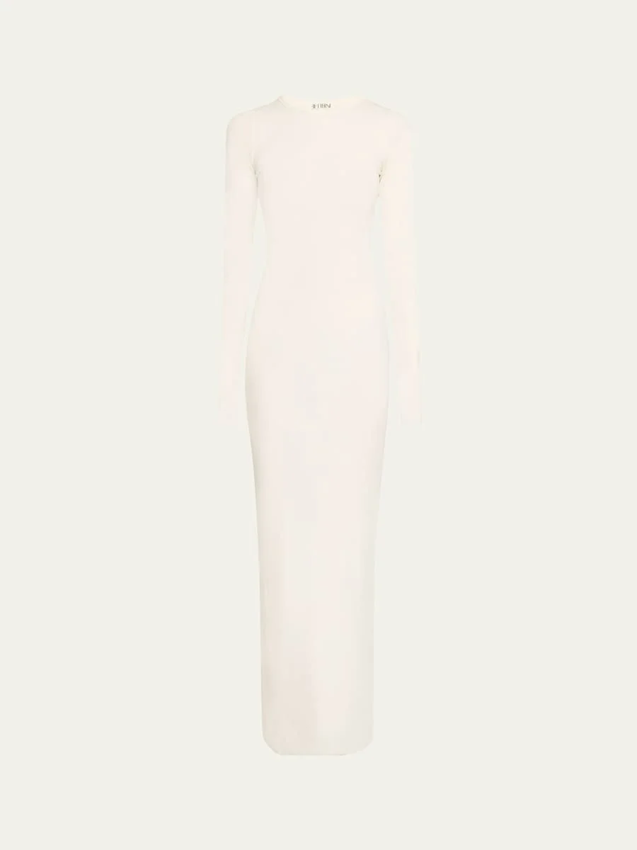 Long-Sleeve Crewneck Rib-Knit Maxi Dress