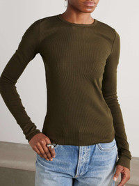 EDITORS'NOTES Eterne's long-sleeve T-shirt is the kind of wardrobe staple you'll reach for time and time again. Made from jersey with plenty of cotton and modal, it has a finely ribbed finish and figure-hugging fit that's ideal for layering. Style yours with everything from tailoring to denim. SIZE & FIT - Fits true to size, take your normal size - Designed for a close fit - Lightweight knit - S/M/L sizing DETAILS & CARE - Army-green jersey - Slips on - 48% cotton, 48% modal, 4% spandex - Machine wash