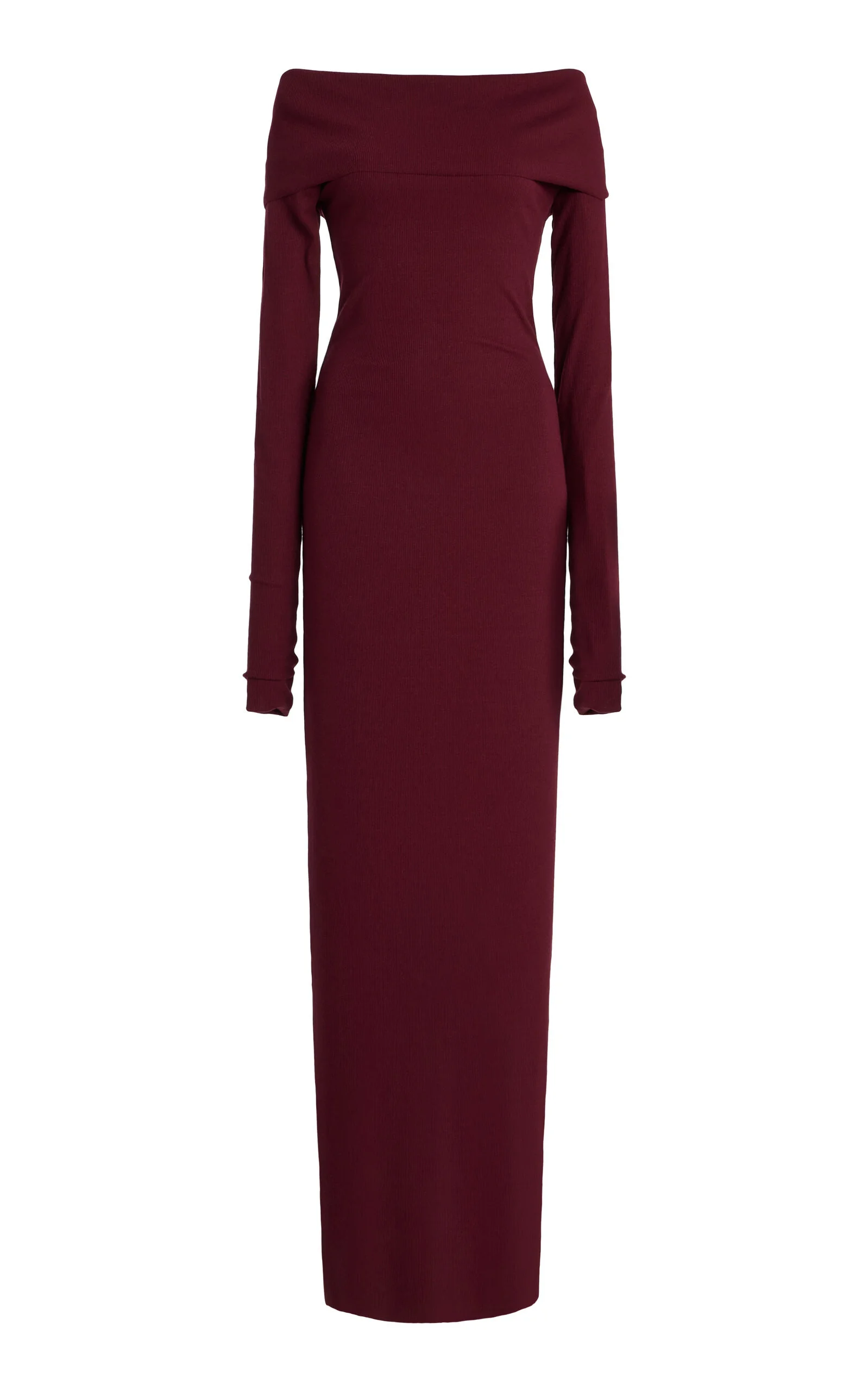Founded by stylist Chloe Bartoli, Eterne specializes in elevated wardrobe essentials created with exquisite craftsmanship and their brand of muted luxury. This long-sleeve maxi is made from a soft, stretchy ribbed jersey using cotton and modal. The sleeves are extra long to create a ruched design. PRODUCT DETAILS - Fall '25 - Slip on - Composition: 48% cotton, 48% modal, 4% spandex - Designer color: Oxblood - Dry clean - Made in the USA SIZE & FIT - Our model is wearing a size Small - Model is 5'10" with a 30" bust, 24" waist, and 34" hip - Designed for a slim fit