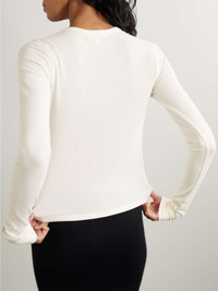 EDITORS'NOTES Eterne's long-sleeved T-shirt is as stylish as it is comfy. It's made from a blend of cotton and modal with a little added stretch and is waffle-knitted for a soft handle. Wear it solo with jeans or layered under a sweater in the colder months. SIZE & FIT - Fits true to size, take your normal size - Designed for a slim fit - Mid-weight, slightly stretchy fabric - Model is 177cm/ 5'10" and is wearing a size Small DETAILS & CARE - Ivory stretch cotton and modal-blend - Slips on - 48% cotton, 48% modal, 4% spandex - Machine wash