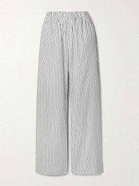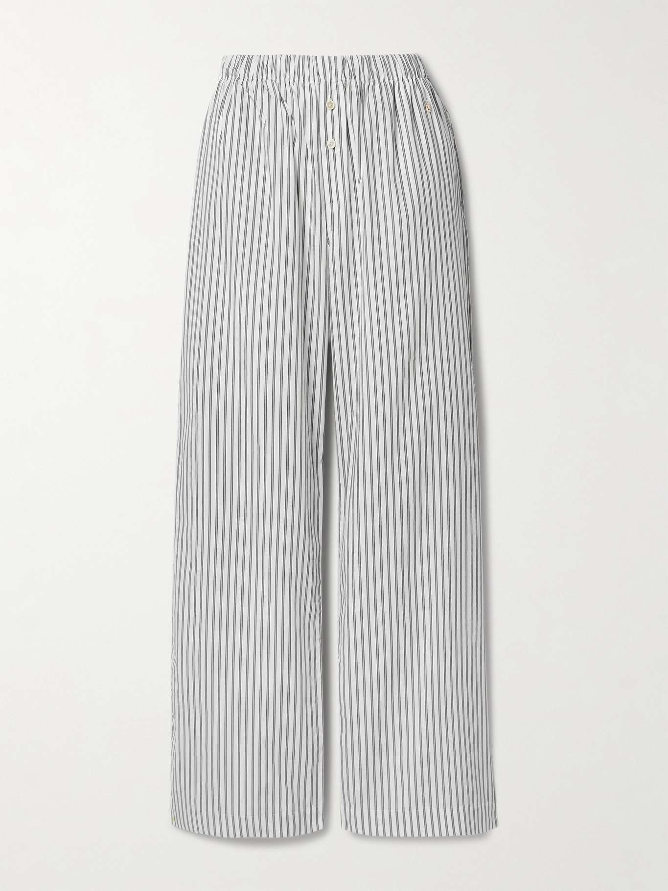 EDITORS'NOTES Eterne pays close attention to fabric and fit, ensuring each design is as comfortable as it looks. Made from striped cotton-poplin, these pants have an elasticated waistband and fall to wide legs that skim the floor. Wear yours as a set with the matching shirt. SIZE & FIT Model measurements: - Fits true to size, take your normal size - High-rise, cut for a wide-leg fit - Lightweight, non-stretchy fabric - Model is 177cm/ 5'10" and is wearing a size XS/S - Bust: 79cm/ 31" - Waist: 61cm/ 24" - Hip: 85cm/ 33.5" DETAILS & CARE - White and black cotton-poplin - Button fastenings along front - 100% cotton - Machine wash
