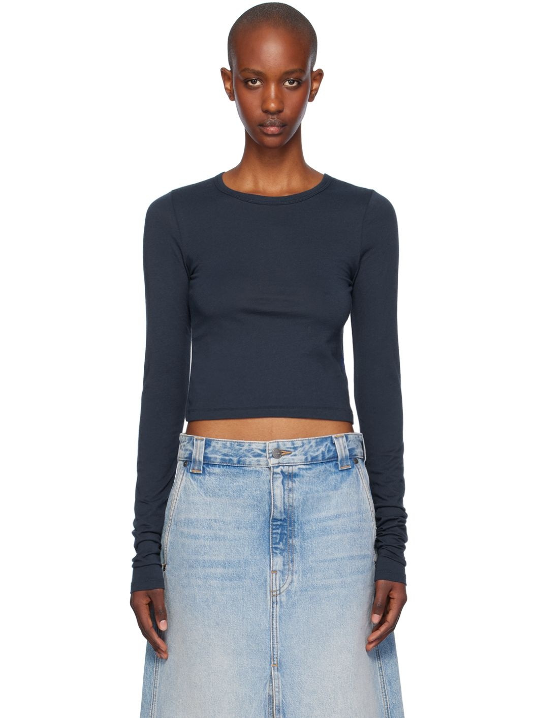 Cotton- and modal-blend jersey T-shirt. · Crewneck · Cropped hem Supplier color: Navy 50% cotton, 50% modal. Made in United States 242910F110005