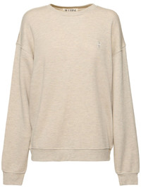 DETAILS - Ribbed collar, cuffs and hem - Front logo detail - Model is wearing a size S - Made in the USA - Composition: 54% Cotton, 46% Viscose