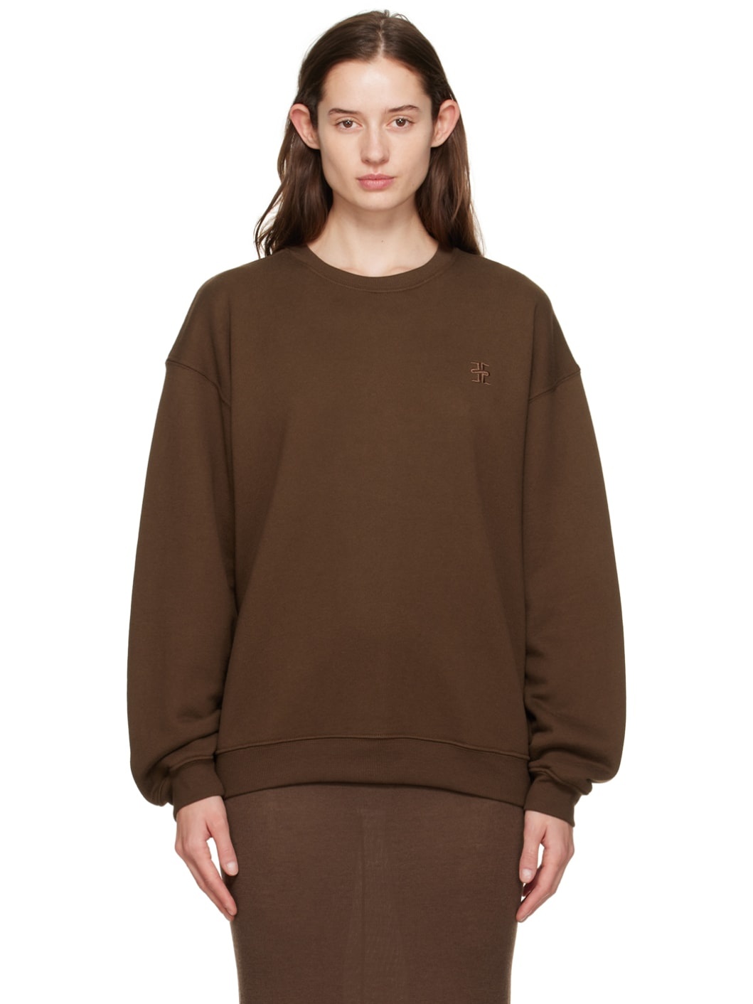 French terry sweatshirt. · Rib knit crewneck, hem, and cuffs · Logo embroidered at chest · Dropped shoulders · Balloon sleeves Supplier color: Heather brown