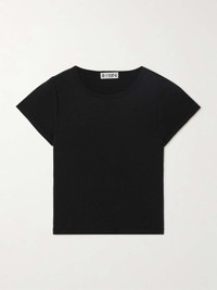 EDITORS'NOTES Éterne's T-shirt is a staple you'll reach for time and time again. It's made from soft cotton and modal-blend jersey for a 'shrunken' fit with a classic crew neckline and cropped hem. Join Hailey Bieber, Kendall Jenner and Emily Ratajkowski by wearing yours with everything from high-rise jeans to track pants. SIZE & FIT Model measurements: - Fits true to size, take your normal size - Designed for a slim fit - Cropped length - Mid-weight, stretchy fabric - Model is 175cm/ 5'9" and is wearing a size Small - Bust: 79cm/ 31" - Waist: 64cm/ 25" - Hip: 92cm/ 36" DETAILS & CARE - Black cotton and modal-blend jersey - Slips on - 50% cotton, 50% modal - Machine wash