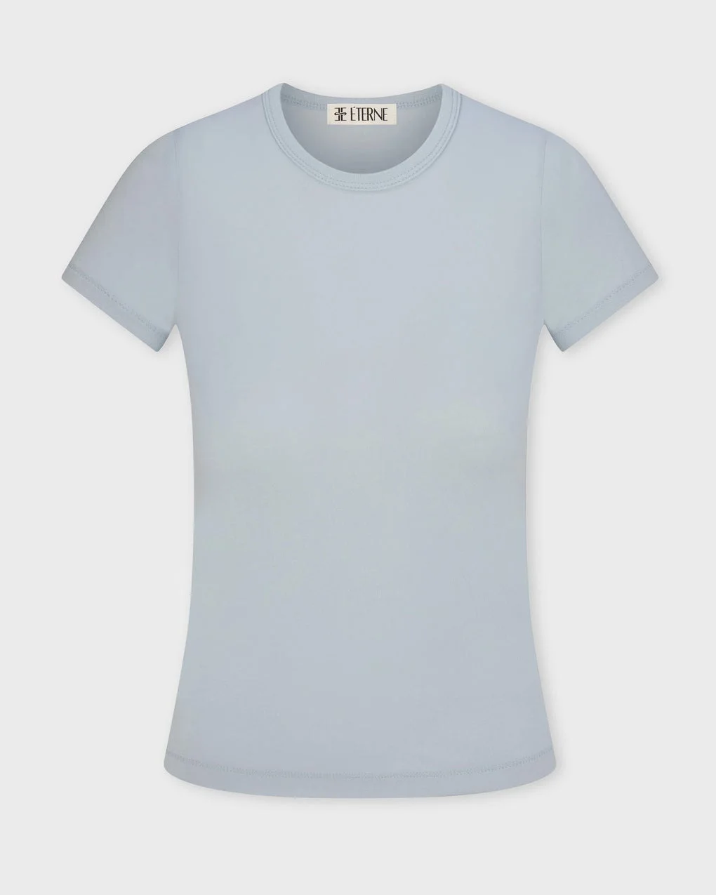 Short Sleeve T-shirt from Eterne. A sleek, form-fitting T-shirt crafted from a soft cotton and modal blend. The classic crewneck design makes it a versatile piece, perfect for both everyday wear and more elevated occasions. Size and Fit - Fits true to size, choose your usual size Specification - Article number - ID: 176616-498 - Brand: Eterne - Color: Dusty blue - Washing Instructions: Machine wash - Made of: 50% Cotton, 50% Modal