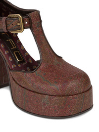 105mm paisley-print platform pumps Highlights - Brown - Paisley print - T-bar strap - Buckle fastening - Platform sole - Block heel Made in Italy Composition Outer: Cotton 76%, Polyester 24% Lining: Polyester 100% Sole: Calf Leather 100% SIZE & FIT Measurement HEEL 4.13 in(10.5 cm)