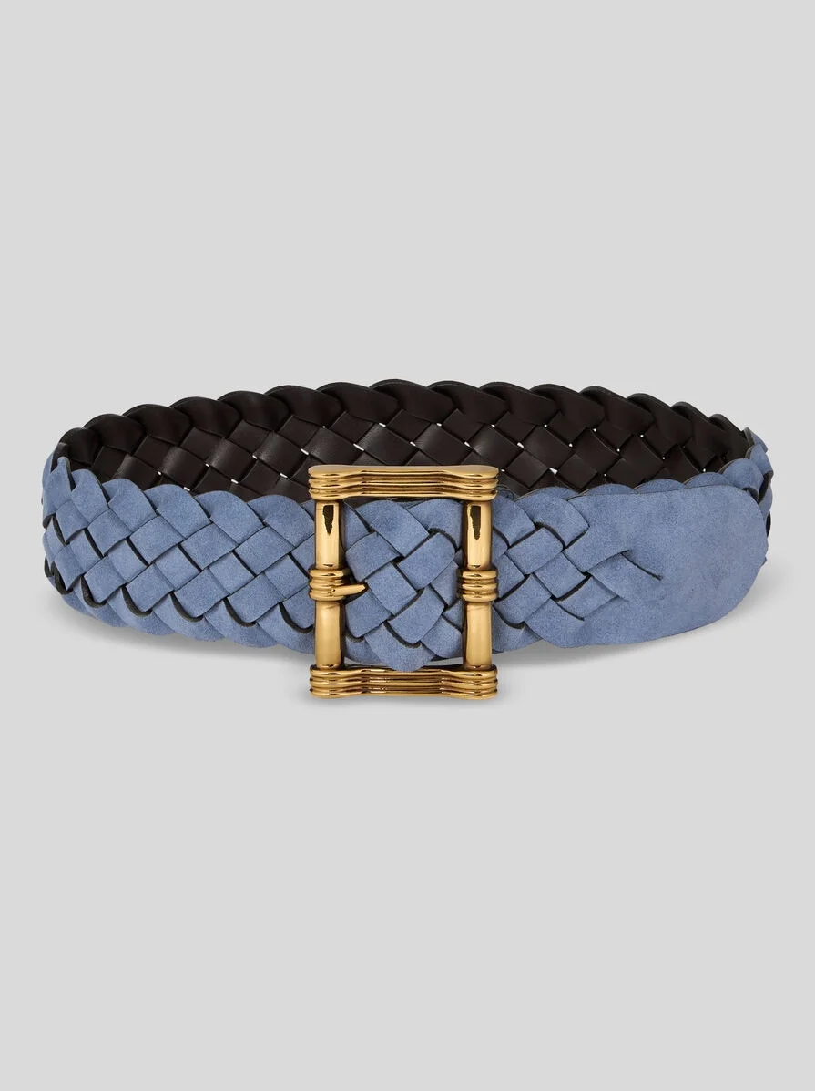 REVERSIBLE WOVEN SUEDE AND LEATHER BELT
