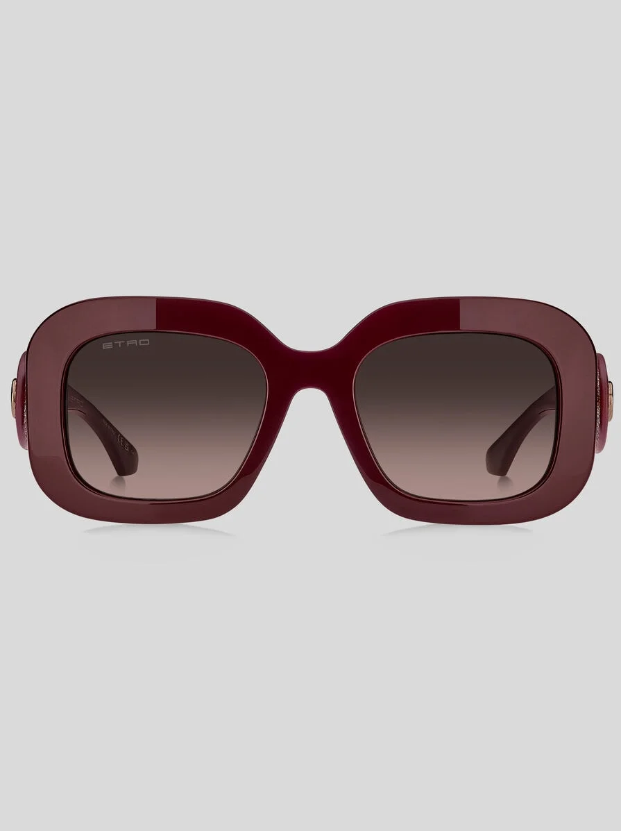 A timeless emblem of Italian craftsmanship, these sunglasses bring ETRO’s iconic textile heritage to the fore. Made with a bold acetate front, the style features metal temples enriched with the original Arnica fabric and a refined Pegasus logo trim in a nod to the Maison’s recognizable jewelry pieces. Subtle cushioning in the arms adds volume, while sculpted acetate end tips ensure comfortable wear. PRODUCT DETAILS • Frame: acetate • Lenses with UV protection • Fitting: global • Lens: 42,7 mm, bridge: 21 mm, temples: 140 mm • Made in Italy