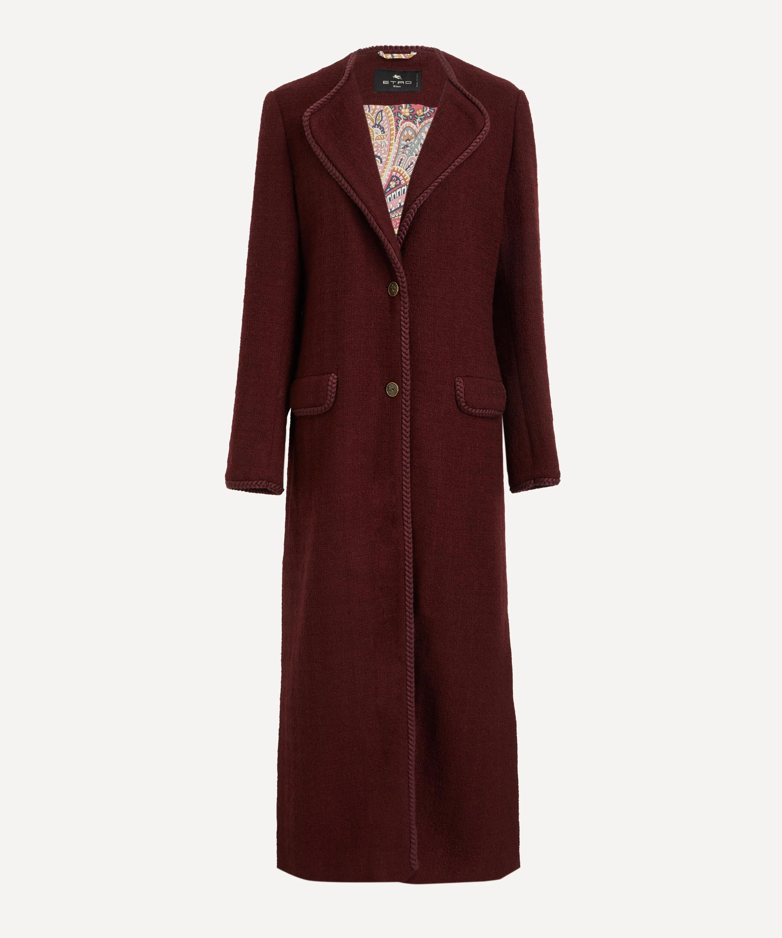 DETAILS Wool-mohair coat Relaxed fit Single-breasted Long-line Padded shoulders Open V-neckline Winged collar Two-button fastening Pegaso-embossed buttons Front flap pockets Braided trims Lined Made in Italy SIZE & FIT Model is 178cm/5'10"; Chest: 77cm; Waist: 65cm; Hip: 92cm and wears a size 10 COMPOSITION & CARE 81% Wool; 17% Mohair; 2% Polyamide Dry clean