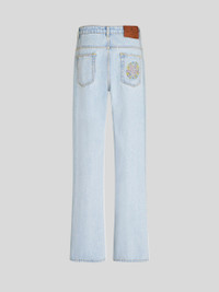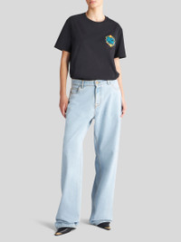 Baggy-fit jeans. This model is made from used-effect cotton denim and embellished with a floral motif and embroidered Pegaso symbol and ETRO logo on one pocket. PRODUCT DETAILS • 100% cotton • Embroidery: 100% cotton • Oversized fit • Low waist • Five pockets • Pegaso button and zip closure • The model is 178 cm/ 70.07 inches tall and wears a size 40 (IT)