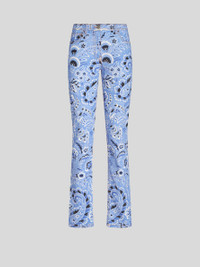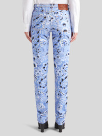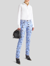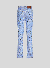Skinny jeans in stretch cotton bull fabric, embellished with an all-over bandanna-inspired print. Label customised with the Pegaso symbol and ETRO logo. PRODUCT DETAILS • 97% cotton, 3% elastane • Skinny fit • High waist • Five pockets • Pegaso button and zip closure • The model is 178 cm / 70.07 inches tall and wears a size 40 (IT)