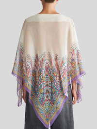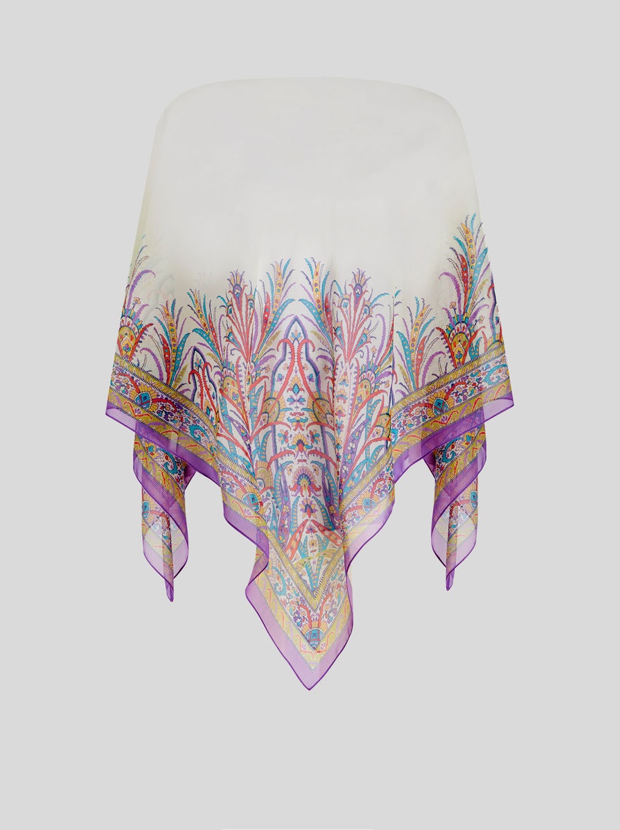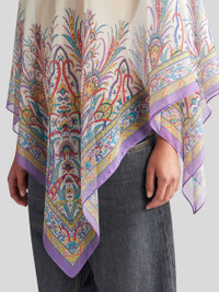 Crepon poncho top with decorative multicoloured bouquet print. PRODUCT DETAILS • 100% polyester • Loose fit • Boat neck • Made in Italy • The model is 178 cm/ 70.07 inches tall and wears a size 40 (IT)