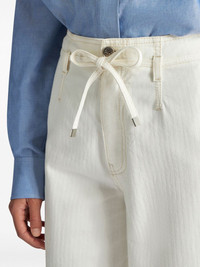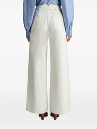 belted high-rise wide-leg jeans Highlights - Ivory white - Cotton - Denim - Tonal design - Vertical stripe pattern - Signature pegaso motif - High-waisted - Wide leg - Front button fastening - Belted waist - Two side slash pockets - Two rear patch pockets Made in Italy Composition Cotton 100% SIZE & FIT Measurement FRONT RISE 12.99 in(33 cm) INSIDE LEG 28.74 in(73 cm) HIPS 42.51 in(108 cm) WAIST 27.55 in(70 cm) Washing instructions Read Manufacturer Guidelines