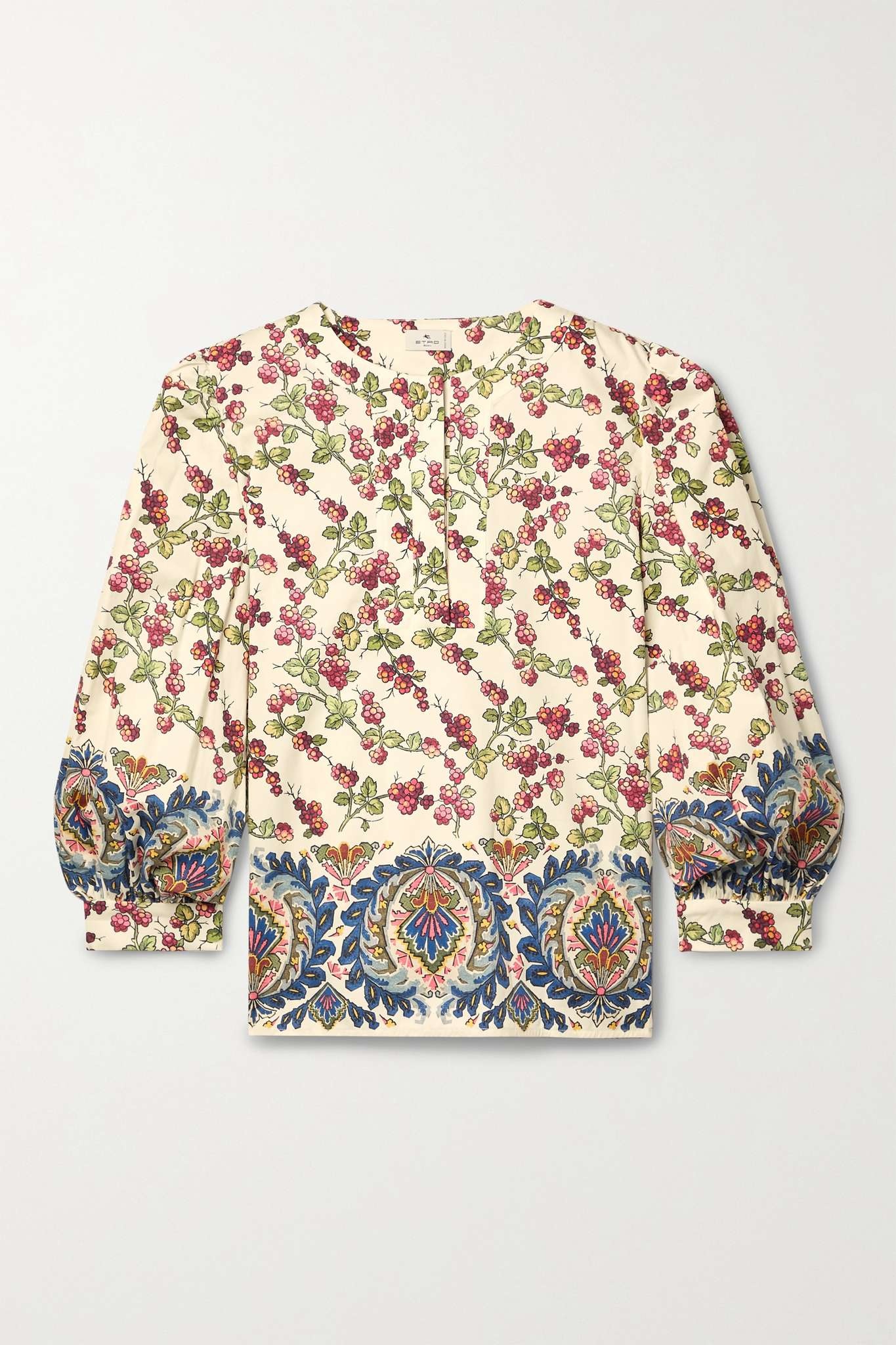 EDITORS'NOTES Etro's blouse is printed with summery blackberries and a bohemian motif at the hem, so you'll want to leave it untucked to show off the details. It's made from cotton-blend poplin in a loose shape enhanced by a back pleat and billowy sleeves. Undo a few buttons at the neck for a relaxed take. SIZE & FIT - Fits true to size, take your normal size - Designed for a boxy fit, cut to be worn loose - Lightweight, non-stretchy fabric - Model is 180cm/ 5’11” and is wearing an IT 40 DETAILS & CARE - Multicolored cotton-blend poplin - Partially concealed button fastenings along front - 97% cotton, 3% elastane - Machine wash