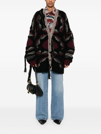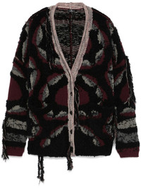 distressed-effect cardigan Highlights - Black/multicolour - Wool blend - Chunky knit - Distressed effect - Front button fastening - Patterned jacquard - V-neck - Drop shoulder - Long sleeves - Ribbed cuffs - Two side patch pockets - Straight hem Made in Italy Composition Wool 95%, Polyamide 4%, Viscose 1% SIZE & FIT Model measurements Height 5 ft 10 in(1.77 m) Bust/Chest 33.07 in(84 cm) Hips 37 in(94 cm) Waist 24.8 in(63 cm) FittingInformation Designed for an oversized fit, offering additional room throughout Made with a midweight knit, this piece offers some stretch