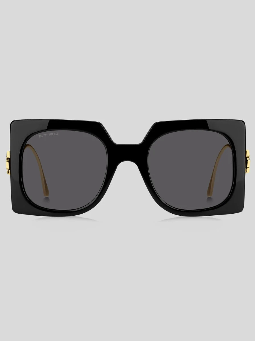 Part of the "Bold Pegaso" eyewear collection, these ETRO sunglasses for women are characterised by a unique arched temple design, inspired by the wings of the mythical Pegasus – a symbol of the Milanese fashion house. A quintessential representation of the brand's iconic style, these frames feature bold beveled fronts, jewel-inspired lacquer applications, and lasered "ETRO" lettering on the tinted lens. PRODUCT DETAILS • Frame: 100% acetate • Lenses with UVA and UVB protection • Fit: International • Lenses: 19.80 inches, bridge: 0.90 inches, temples: 5.51 inches (Lenses: 50.3 mm, bridge: 23 mm, temples: 140 mm) • Made in Italy