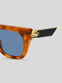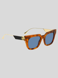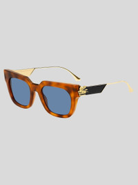 Part of the "Bold Pegaso" eyewear collection, these ETRO sunglasses for women are characterised by a unique temple design: vibrant lacquer applications add a jewel-like quality to the frames, together with a metal trim of the mythical Pegasus – a symbol of the Milanese fashion house. A quintessential representation of the brand's iconic style, these frames feature bold beveled fronts, and lasered "ETRO" lettering on the tinted lens. PRODUCT DETAILS • Frame: 100% acetate • Lenses with UVA and UVB protection • Fit: Global fit • Lenses: 1.7 inches, bridge: 0.87 inches, temples: 5.51 inches (Lenses: 43,1 mm, bridge: 22 mm, temples: 140 mm) • Made in Italy