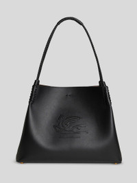 Medium Libra tote bag in leather. This item is embellished with a patch featuring the ETRO monogram and Pegaso symbol on the front. Braided handles and threading on the corners of the bag. This accessory features a convenient suede clutch with decorative brand lettering inside. • Dimensions (Width, Height, Depth): 11.4 x 15.4 x 6.3 inches (29 x 39 x 16 cm) • Clasp closure • Two braided handles • Metal feet • Made in Italy PRODUCT DETAILS • Exterior: calfskin • Interior: cowhide