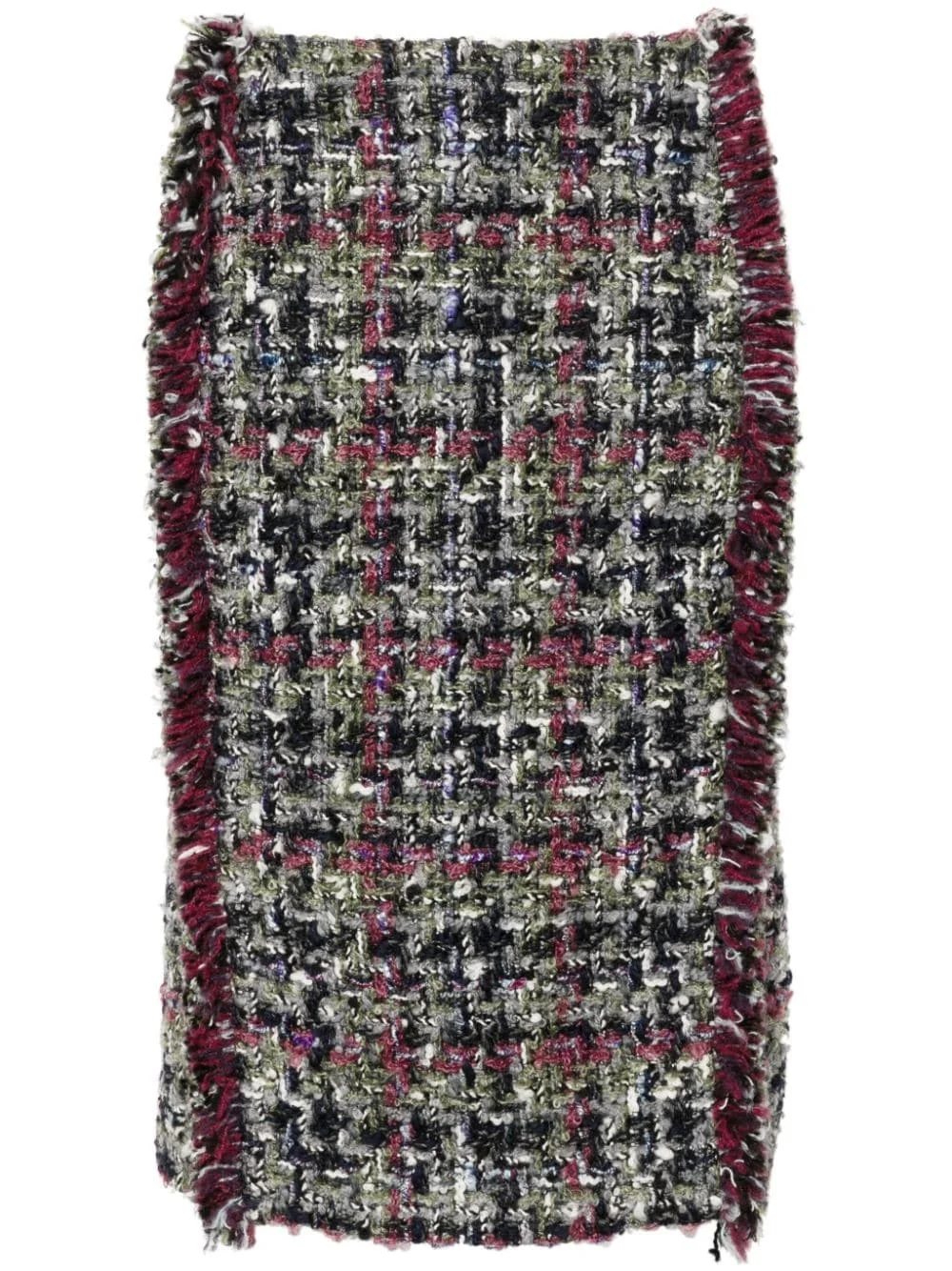 boucle midi skirt Highlights - Multicolour - Boucle construction - A-line - Fringe detailing - Side slits - Concealed side zip fastening Made in Italy Composition Outer: Wool 49%, Mohair 15%, Polyester 12%, Polyamide 9%, Cotton 7%, Acrylic 5%, Viscose 3% Lining: Viscose 57%, Polyester 43% SIZE & FIT Model measurements Height 5 ft 10 in(1.78 m) Bust/Chest 31.49 in(80 cm) Hips 37 in(94 cm) Waist 23.62 in(60 cm) FittingInformation This midi-length skirt is intended to be worn just below the waist The vented hem offers movement at the rear Made from a midweight non-stretch fabric This piece fits true to size – take your usual size