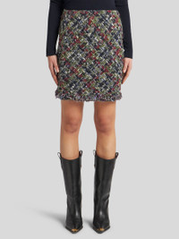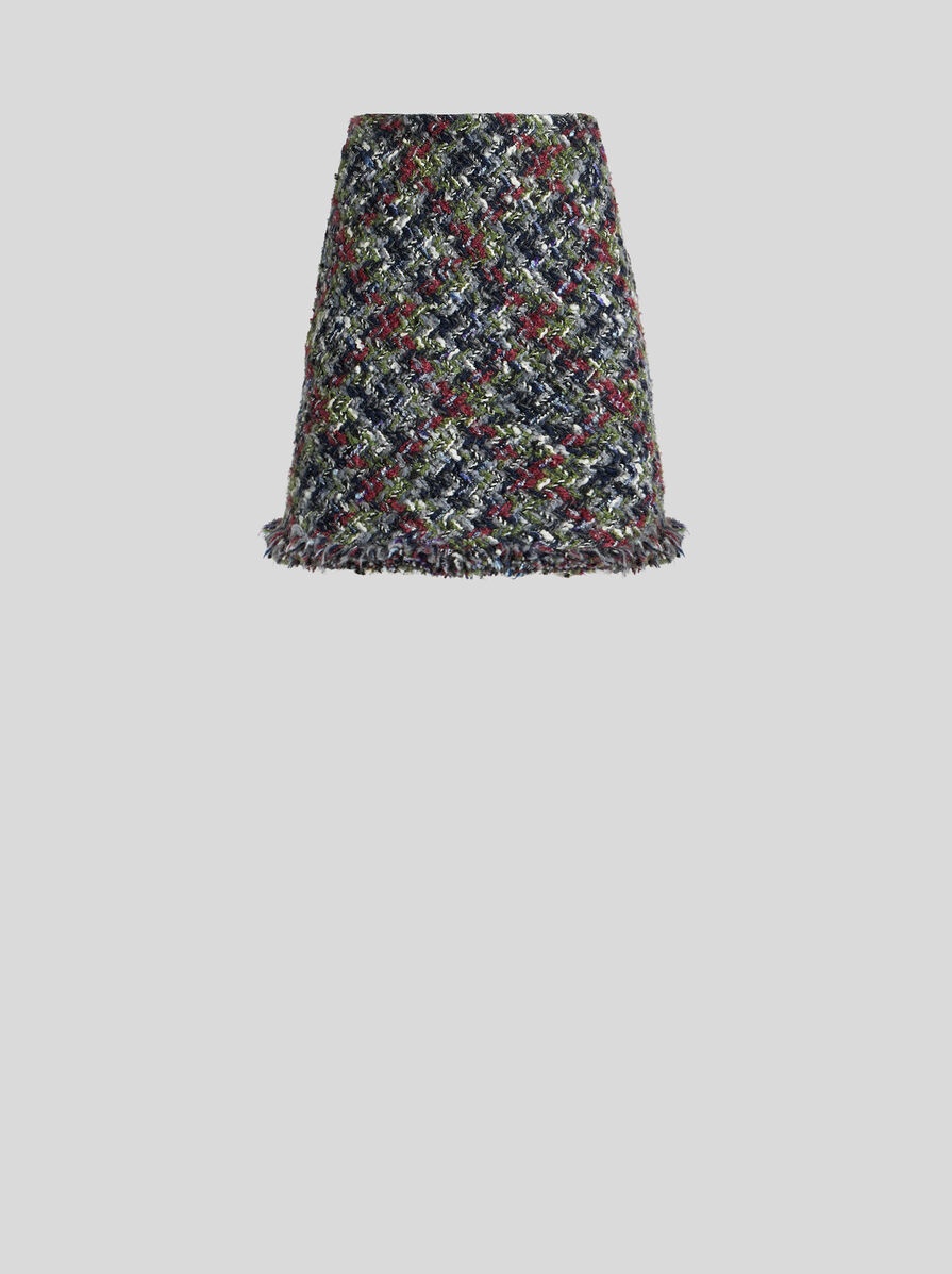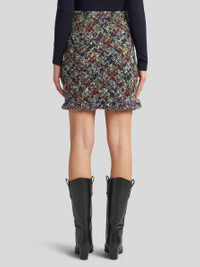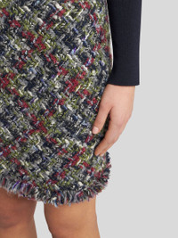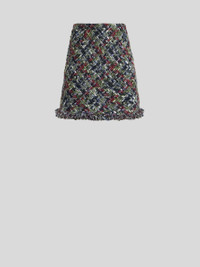 Mini skirt in multicoloured, wool- and mohair-blend bouclé fabric. This skirt features micro-fringe detailing at the bottom. PRODUCT DETAILS • 49% wool, 15% mohair, 12% polyester, 9% polyamide, 7% cotton, 5% acrylic, 3% viscose • Trim: 70% wool, 20% acrylic, 10% polyamide • Lining: 52% viscose, 48% acetate
