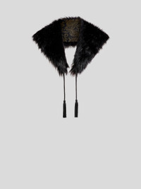 Collar made from soft, plain-coloured imitation fur. The silk-blend lining is embellished with a Paisley motif in shiny lurex. Completing the accessory are braided cords with decorative tassels. • Made in Italy PRODUCT DETAILS • Lining: 83% silk, 17% polyester