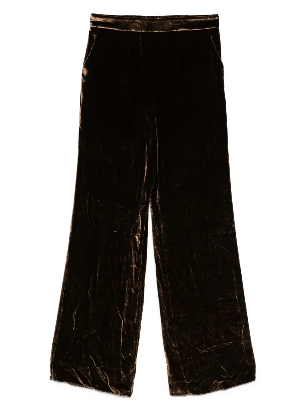 velvet trousers Highlights - Brown - Velvet texture - Wide leg - High waist - Side pockets - Straight hem Made in Italy Composition Viscose 80%, Silk 20% SIZE & FIT Model measurements Height 5 ft 10 in(1.78 m) Bust/Chest 33.46 in(85 cm) Hips 36.22 in(92 cm) Waist 23.22 in(59 cm)