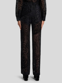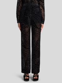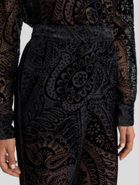 BURNOUT VELVET PALAZZO TROUSERS WITH FLORAL PAISLEY MOTIF