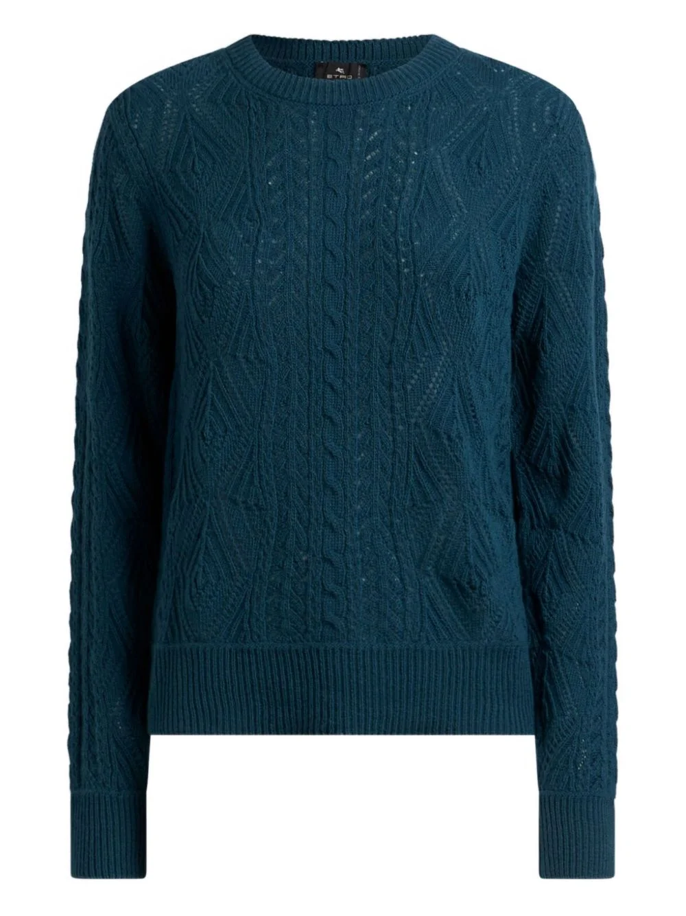cable-knit wool sweater Highlights - Blue - Cable knit - Crew neck - Long sleeves - Ribbed cuffs - Ribbed hem Made in Italy Composition Wool 100% SIZE & FIT FittingInformation Designed for a relaxed fit, this piece allows for comfort and movement when worn The ribbed hem offers a close, comfortable fit Made with a midweight knit, this piece offers some stretch Washing instructions Read Manufacturer Guidelines