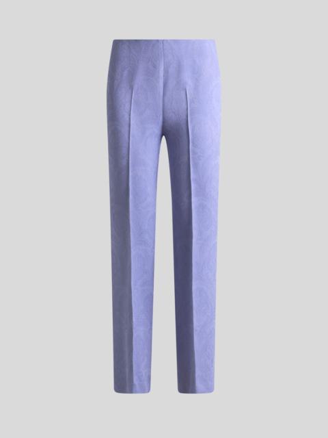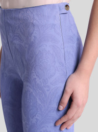 Tailored trousers in stretch cady with tonal floral jacquard motif. They feature classic pressed creases and flare out slightly towards the bottom. • Fit-and-flare fit • Concealed zip and button closure • Made in Italy • The model is 5' 9½" (177 cm) tall and wears a size 40 PRODUCT DETAILS • 97% viscose, 3% elastane