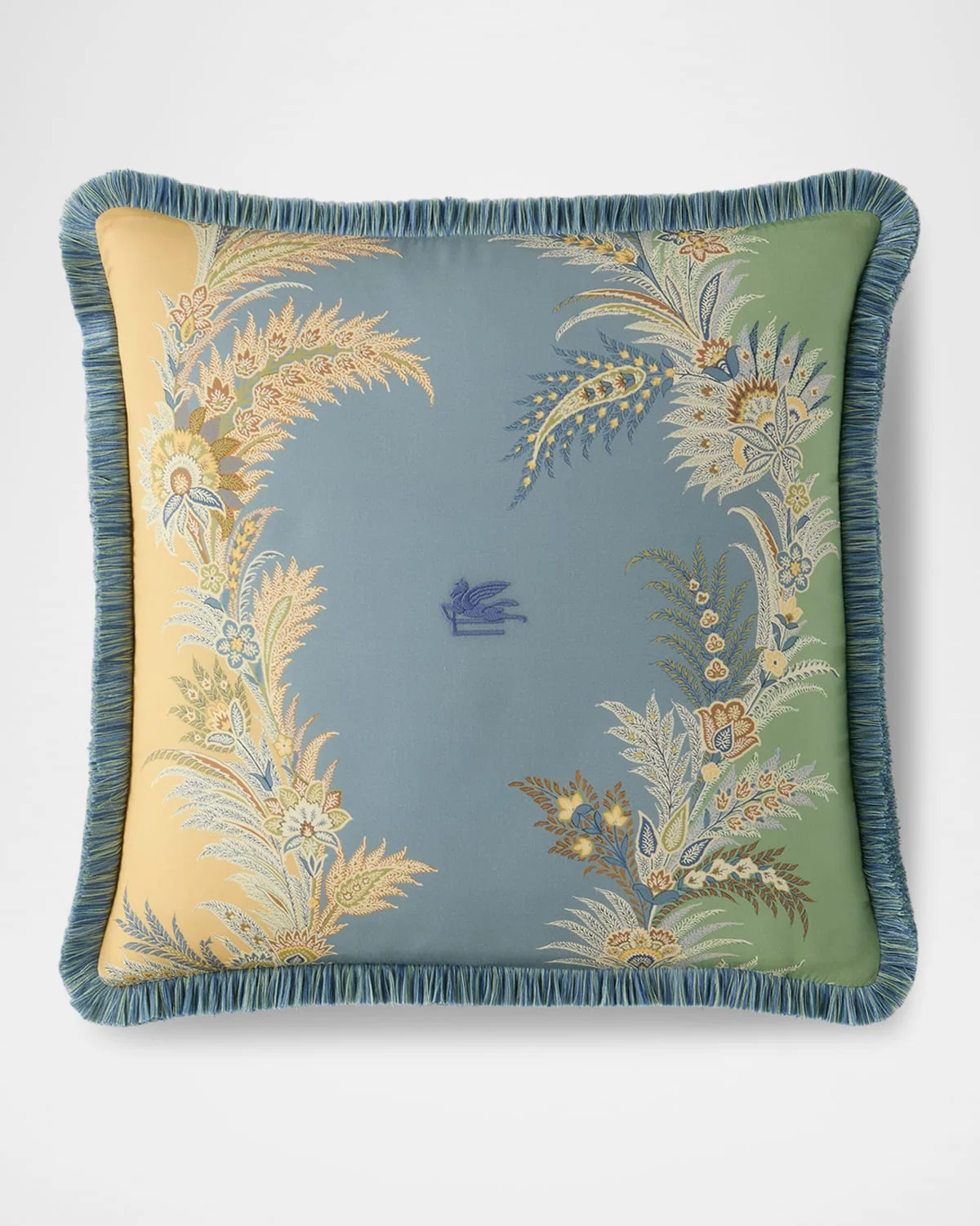 Decoratie pillow features intricate embroidery and fringed edges Made of polyester Cotton padding Approx. 18"Sq. Dry clean Made in Italy