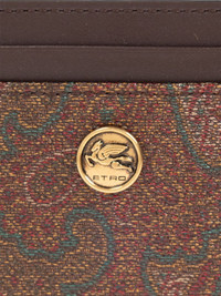 paisley-pattern card holder Highlights - Brown - Paisley print - Multiple card slots - Signature pegaso motif Made in Italy Composition Outer: PVC 100%, Cotton 76%, Polyester 24% SIZE & FIT Measurement LENGTH 3.93 in(10 cm) WIDTH 3.14 in(8 cm)