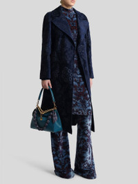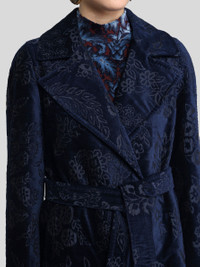 Coat in soft chenille with tone-on-tone floral jacquard motif. This model is fastened with a matching belt. • Regular fit • Lapel collar • Fastened with belt • Made in Italy • The model is 5' 9½" (177 cm) tall and wears a size 40 PRODUCT DETAILS • 85% viscose, 9% polyester, 6% polyamide • Lining: 52% viscose, 48% acetate