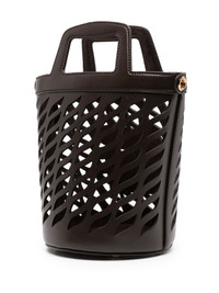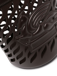 Coffa leather bucket bag ETRO presents this Coffa bucket bag, which ic crafted from laser-cut calf leather and adorned with the brand's signature Pegaso logo at the front. It can be hand-held by the cut-out top handles or styled across the body thanks to the striped detachable shoulder strap. Highlights - Brown - Calf leather - Bucket body - Signature pegaso motif - Laser-cut detail - Cut-out top handle - Hook-clip fastening - Detachable shoulder strap - Main compartment Made in Italy Composition Lining: Calf Leather 100% Outer: Bullhide Leather 100% SIZE & FIT Model measurements Height 5 ft 9 in(1.75 m) Bust/Chest 31.1 in(79 cm) Hips 33.46 in(85 cm) Waist 23.22 in(59 cm) Measurement DEPTH 6.69 in(17 cm) HANDLE 2.36 in(6 cm) HEIGHT 9.44 in(24 cm) STRAP 21.65 in(55 cm) WIDTH 6.69 in(17 cm)