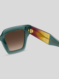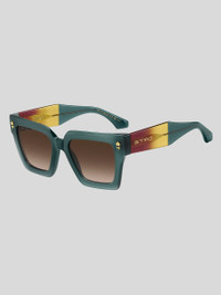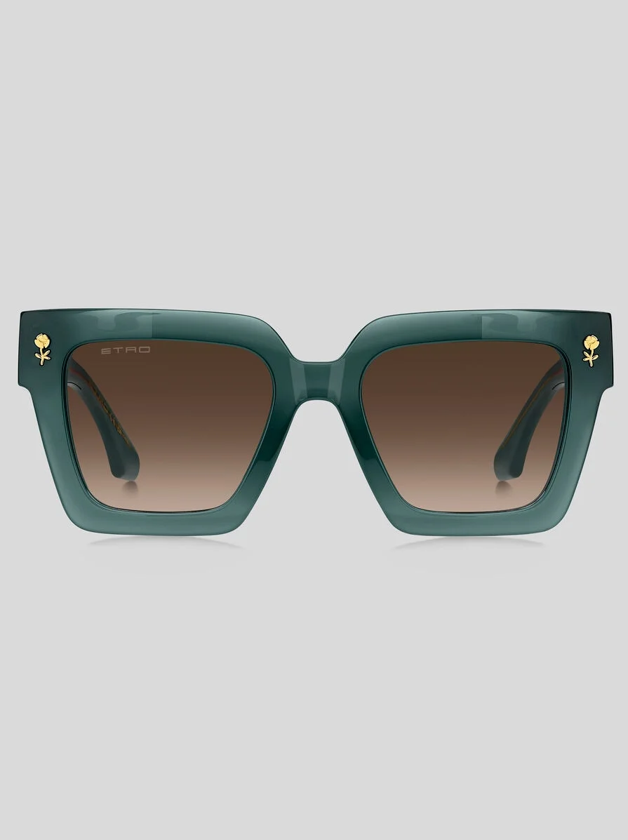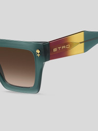 A dazzling celebration of ETRO’s vibrant identity, the "Color Stripes" sunglasses are designed to stand out. They are made with a bold acetate frame that's bevelled for a lighter feel and accented with a floral metal detail inspired by signature embroidery. Detailed with an inlet logo and finished with sculpted end tips, the wide temples reveal a graphic wire-core that adds refined structure. PRODUCT DETAILS • Frame: acetate • Lenses with UV protection • Fitting: international • Lens: 43,2 mm, bridge: 20mm, temples: 145 mm • Made in China