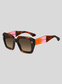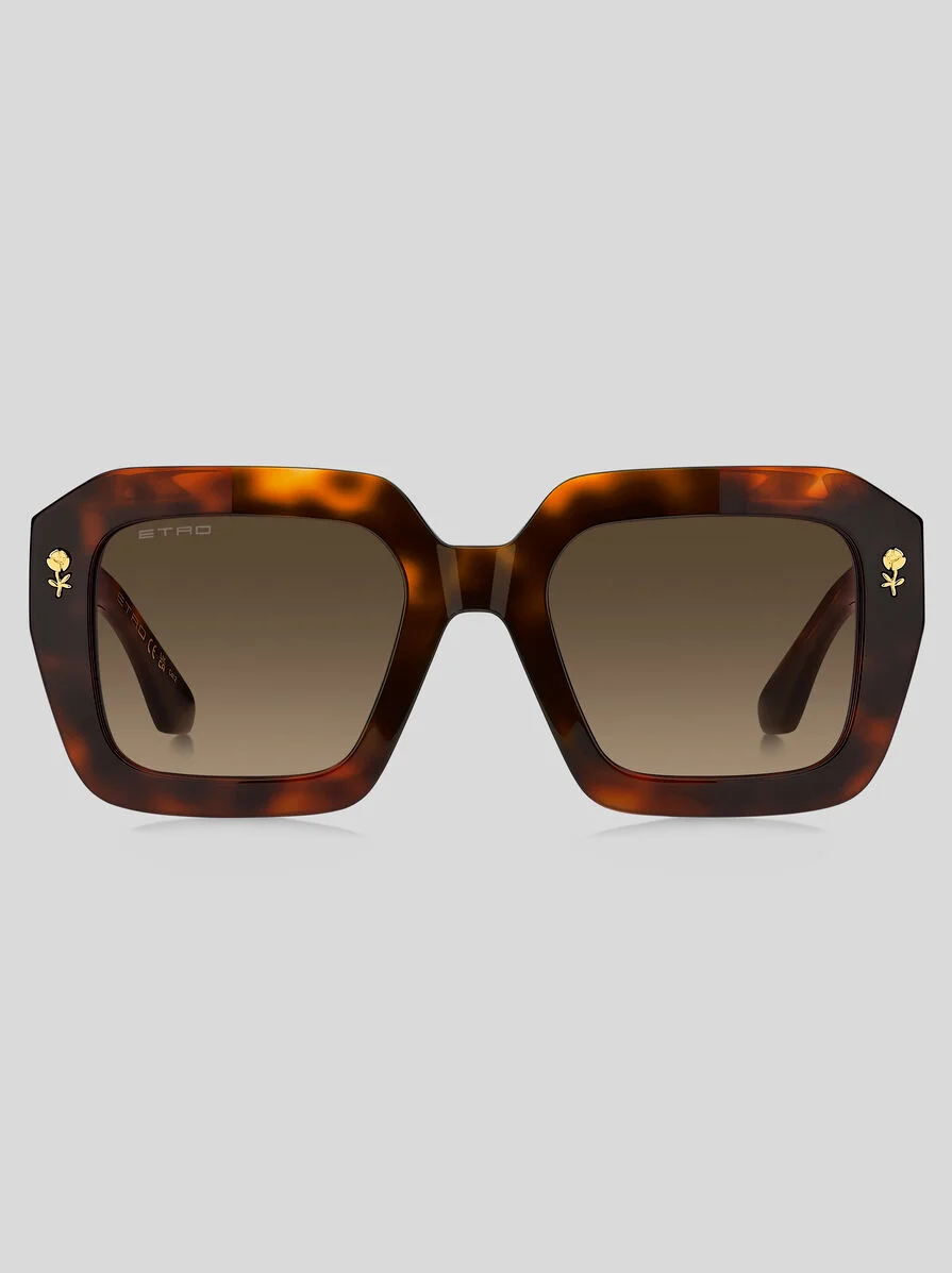 A dazzling celebration of ETRO’s vibrant identity, the "Color Stripes" sunglasses are designed to stand out. They are made with a bold acetate frame that's bevelled for a lighter feel and accented with a floral metal detail inspired by signature embroidery. Detailed with an inlet logo and finished with sculpted end tips, the wide temples reveal a graphic wire-core that adds refined structure. PRODUCT DETAILS • Frame: acetate • Lenses with UV protection • Fitting: international • Lens: 43,4 mm, bridge: 22mm, temples: 145 mm • Made in China