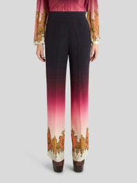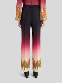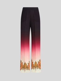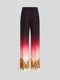 Palazzo trousers in silk crêpe de chine from the Spring-Summer 2023 Fashion Show collection featuring a degradé shading and Paisley border. PRODUCT DETAILS • 100% silk • Regular fit • Elastic at rear waist • Side hidden zip fastening • Side pockets • Made in Italy • The model is 178 cm tall and wears size 40