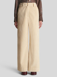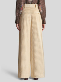Cotton corduroy trousers from the Women's Fall-Winter 2023 Fashion Show collection. PRODUCT DETAILS • 100% cotton • High waist • Loose fit • Double button and zip fastening • Piped side pockets • Piped rear pocket • Made in Italy • The model is 178 cm / 70,07 inches tall and wears size 40