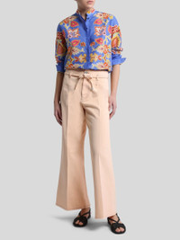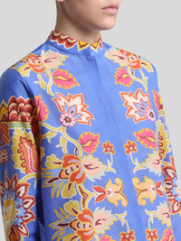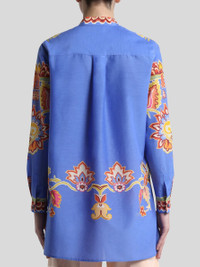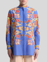 Long cotton- and silk-blend shirt. This item features a Mandarin collar and a placed floral print. • Regular fit • Mandarin collar • Long sleeves • Working cuffs • Concealed button closure on the back • Made in Italy • The model is 5' 9½" (177 cm) tall and wears a size 40 PRODUCT DETAILS • 70% cotton, 30% silk